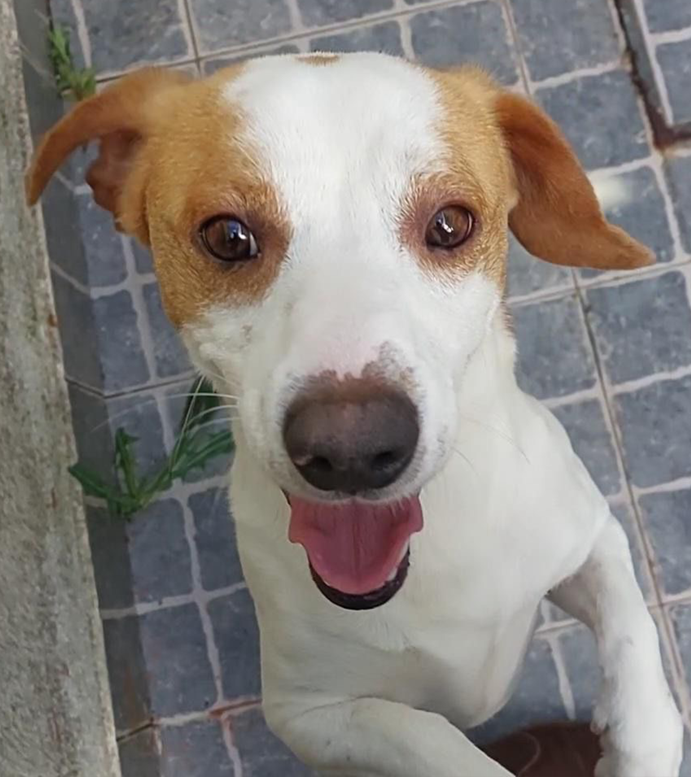 Macho. Muito ativo e cheio de energia. Dá-se bem com outros cães. Pesa 15 kilos.