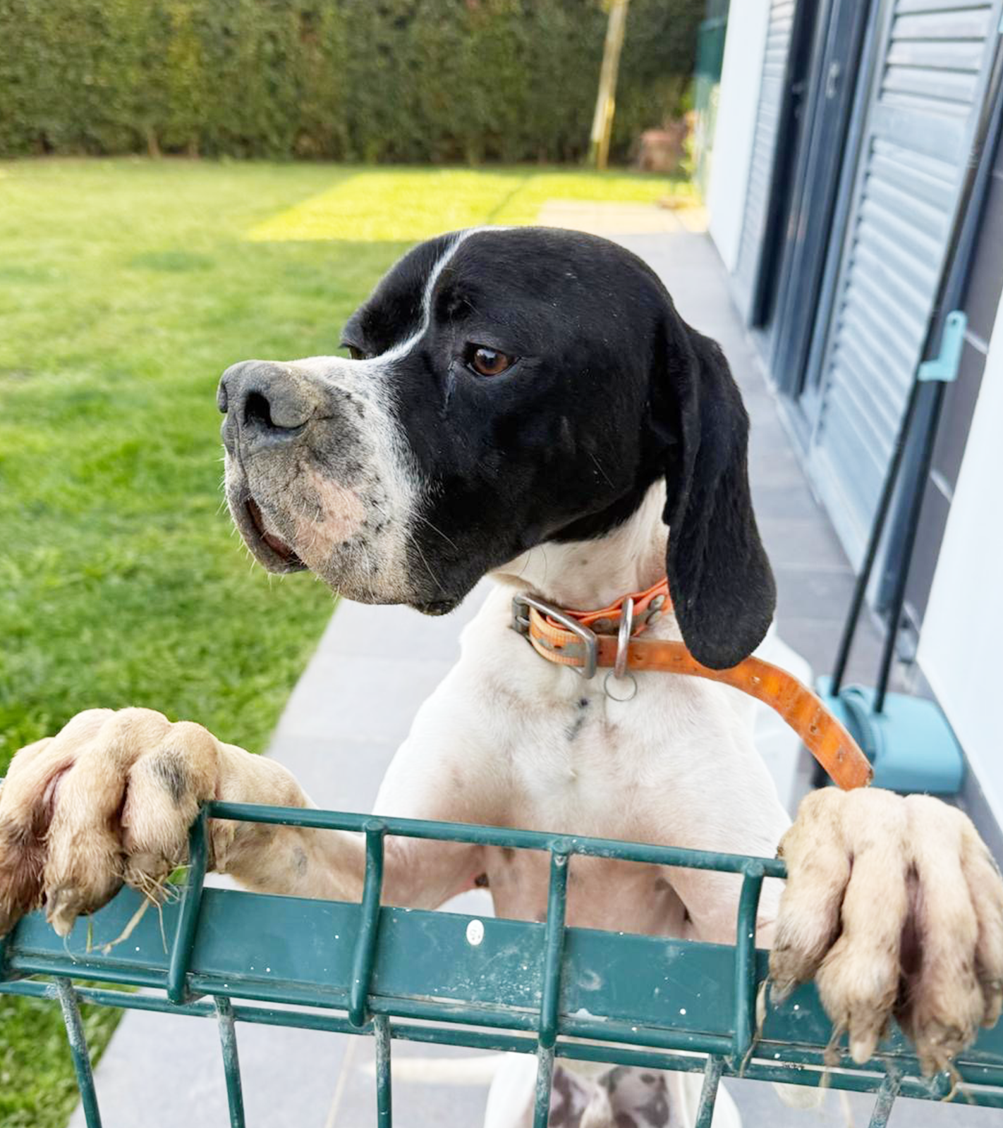 Macho. Raça Pointer Inglês. Cheio de energia. Muito brincalhão. Dá-se bem com outros cães. Tem instinto de caça.